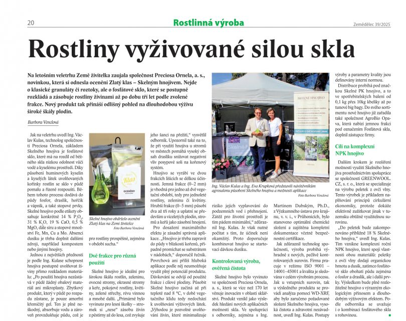 Skelné hnojivo v odborném časopisu